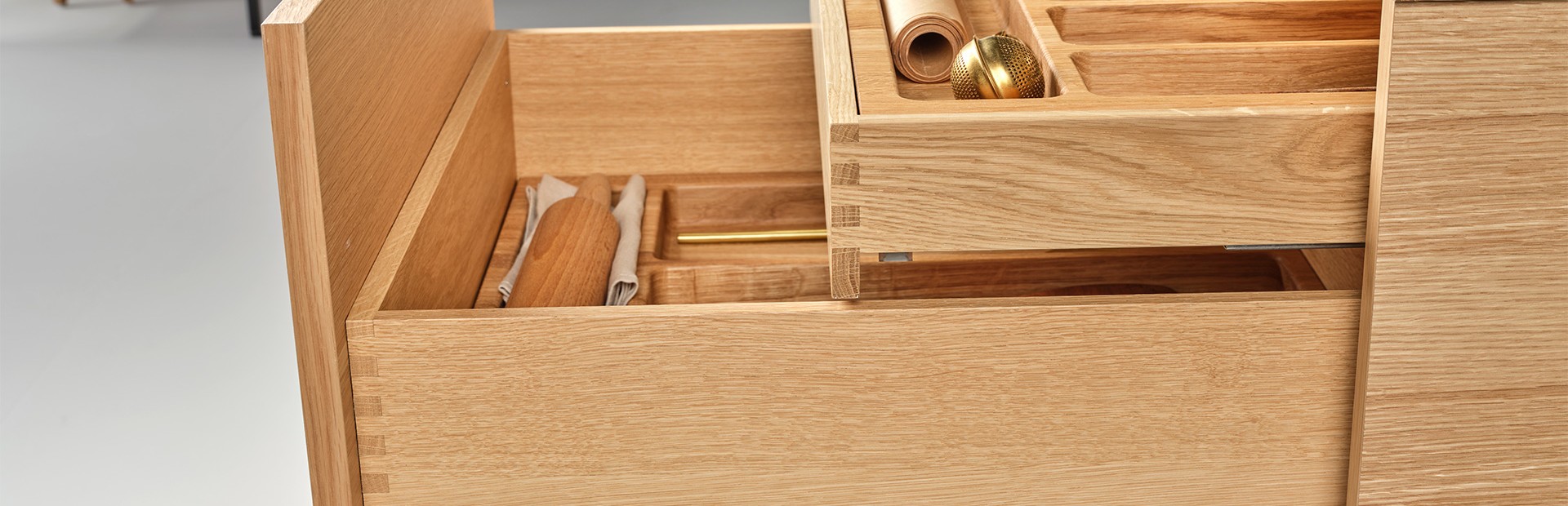 Svane Kjøkkenet tilbyr den smarte Legra Box-skuffen, der du kan utnytte hele skuffen fullt ut. Det blir plass til mer, og den har et stramt uttrykk.